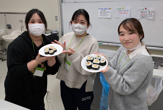 今月のこども交流会は巻き寿司を作りました。学生はこどもたちに笑顔で声をかけて一緒に活動していたり、こどもたちががんばったところを言語化して皆に紹介したり、こどもたちの嬉しそうな笑顔が輝いていました。そして、学生とこどもたちが協働する場が学内にあるところがちよたんの素敵なところです♪