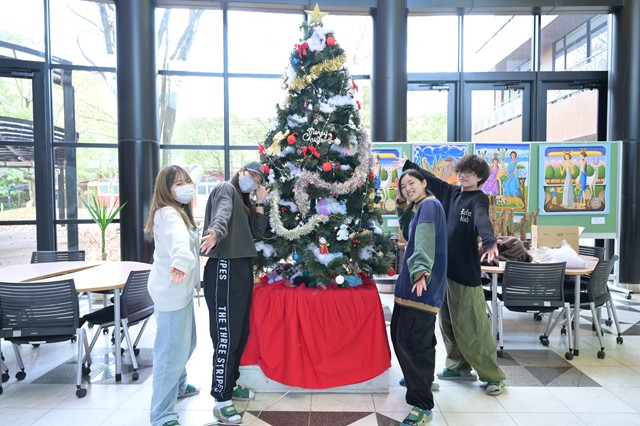 今年もロビーに登場!!学生達で1から組み立て・飾りつけまでして完成~~~🎵
