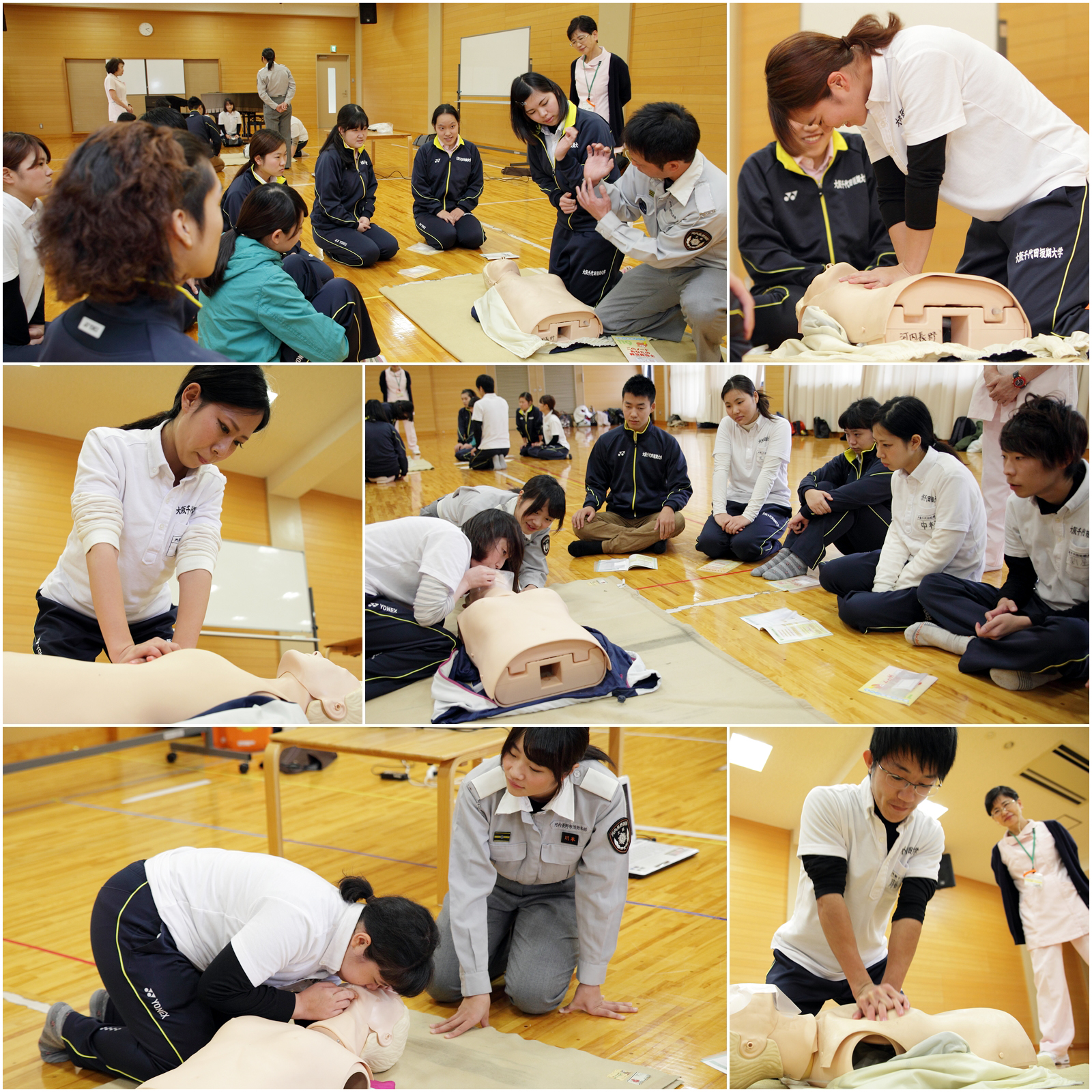 心臓マッサージ・人工呼吸からAEDの使用方法といった救急車が到着するまでにできる救急救命と、 福祉施設で高齢者など利用者さんを対象とした場合の注意点についてもレクチャーを受けました。