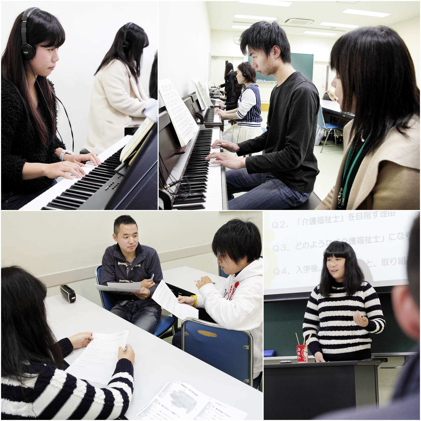 幼児教育コースではピアノレッスン、介護福祉コースでは2年間で学ぶ内容を踏まえて、 どんな介護福祉士になりたいかのグループワークを中心とした半日の講義を行いました。