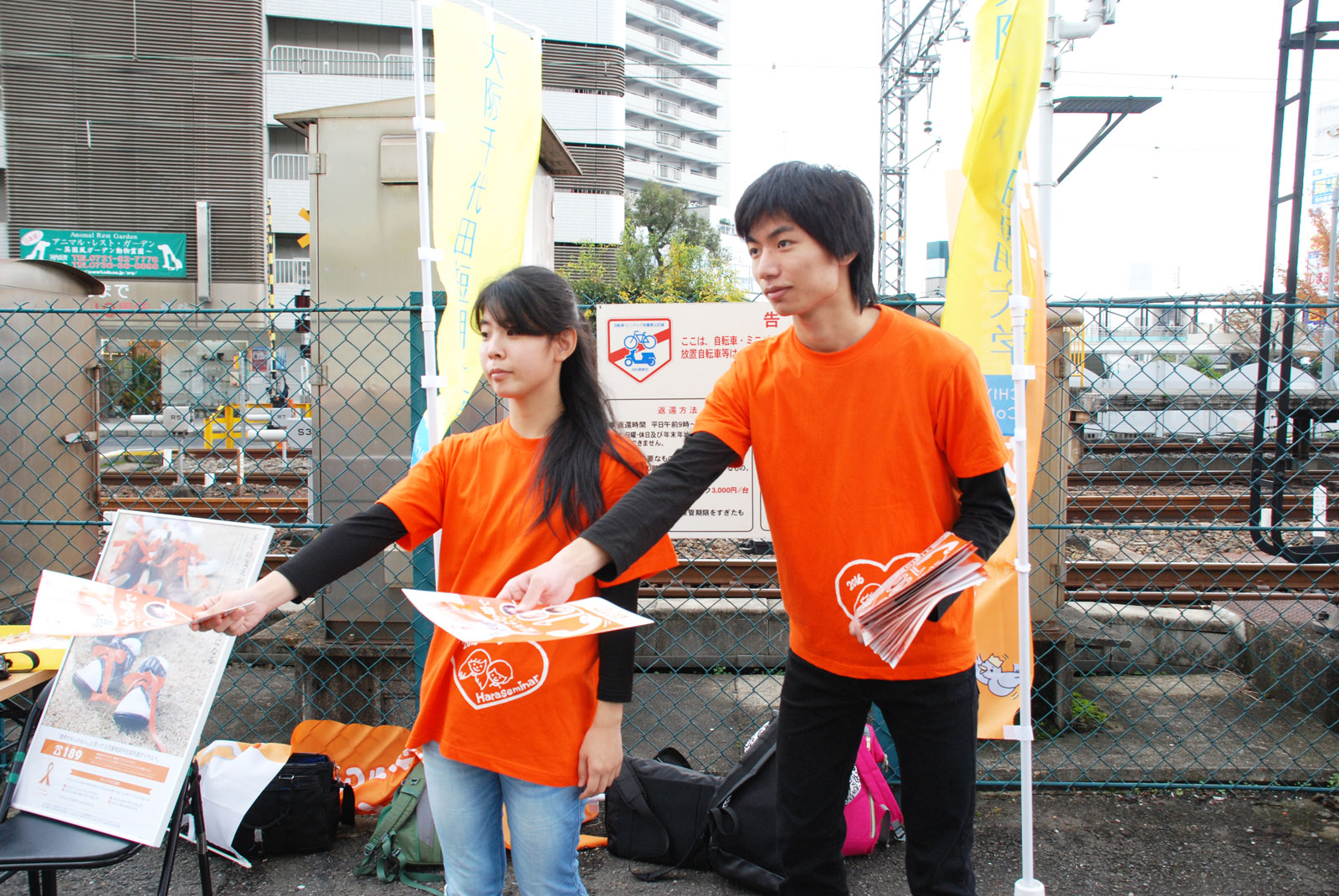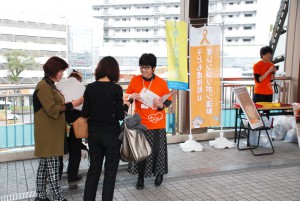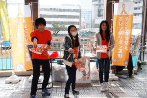 11月20日(日)午前11時から午後3時まで河内長野駅頭で幼児教育コースの原ゼミの学生が児童虐待防止啓発活動を行いました。チラシとオレンジのリボンを配布し、児童虐待について多くの人が関心を持ってもらえるように訴えました。小さなお子さんの胸にリボンをつけてあげたりして、児童虐待を考えてもらうきっかけになったと思います。