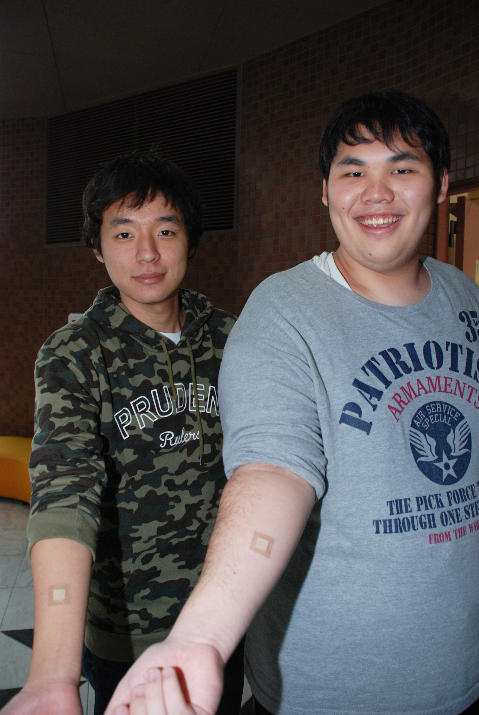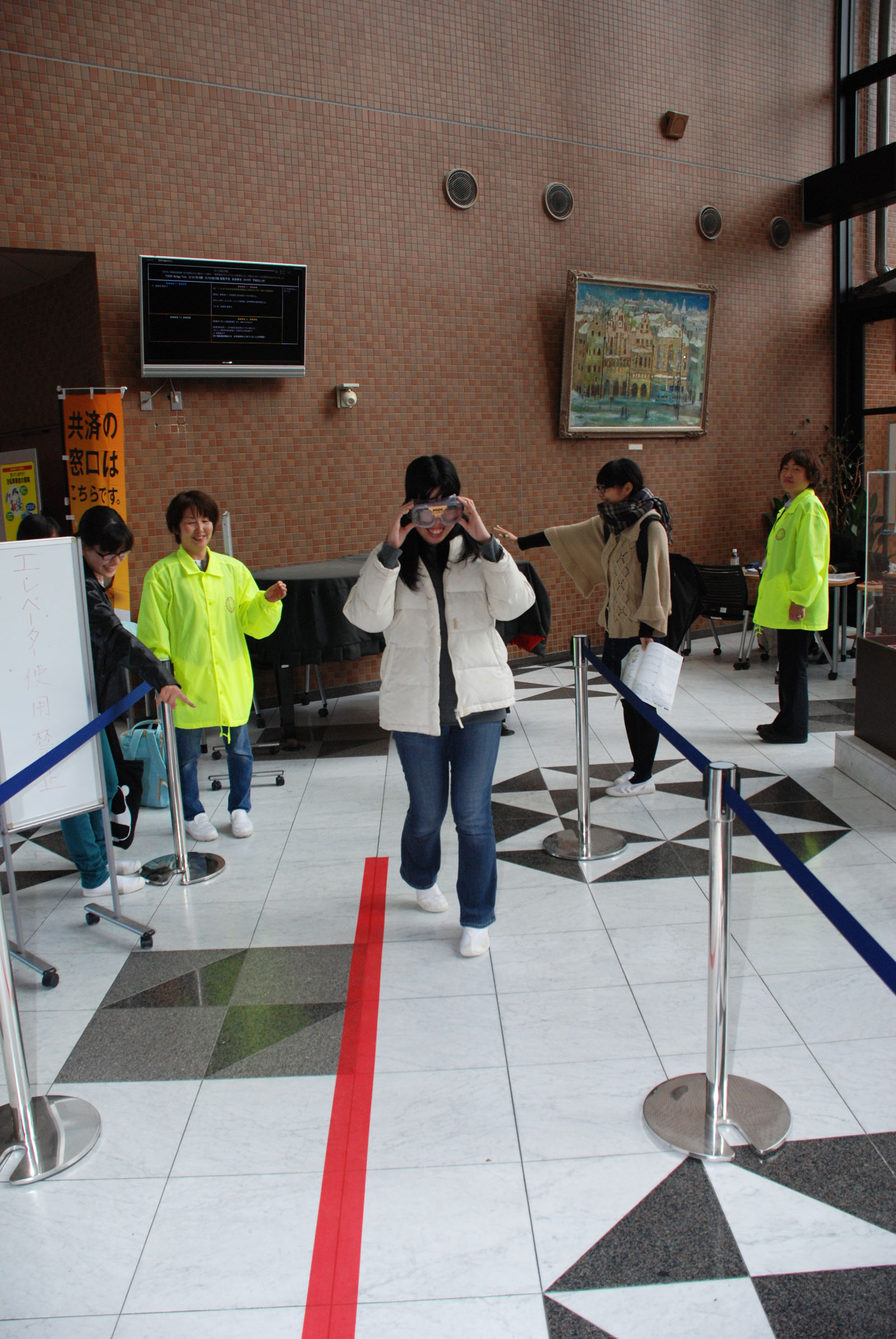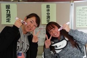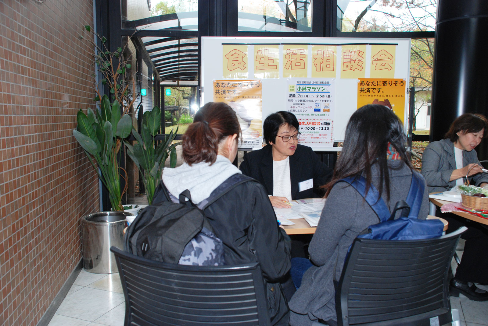 11月24日昼休み、千代田短大生協が食生活相談会を行いました。学生たちは、アンケートを基に栄養士さんから食生活についての様々なアドバイスをいただいていました。併せて体脂肪率の測定や肌水分の測定などの健康チェックや、アルコールパッチテスト、飲酒体験ゴーグルをかけてまっすぐに歩けるかどうかのチャレンジも行いました。