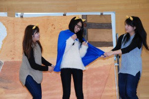 幼児教育2回生は2週間後の保育園・幼稚園での劇発表に向け舞台げいこに励んでいます。11月30日には、これまでの成果をそれぞれのグループで発表し、お互いに学びあい、気づいたことを指摘しあいました。また、先生方からのいろいろなアドバイスをもらい、本番に向けさらに良いものにしていきたいと思っています。