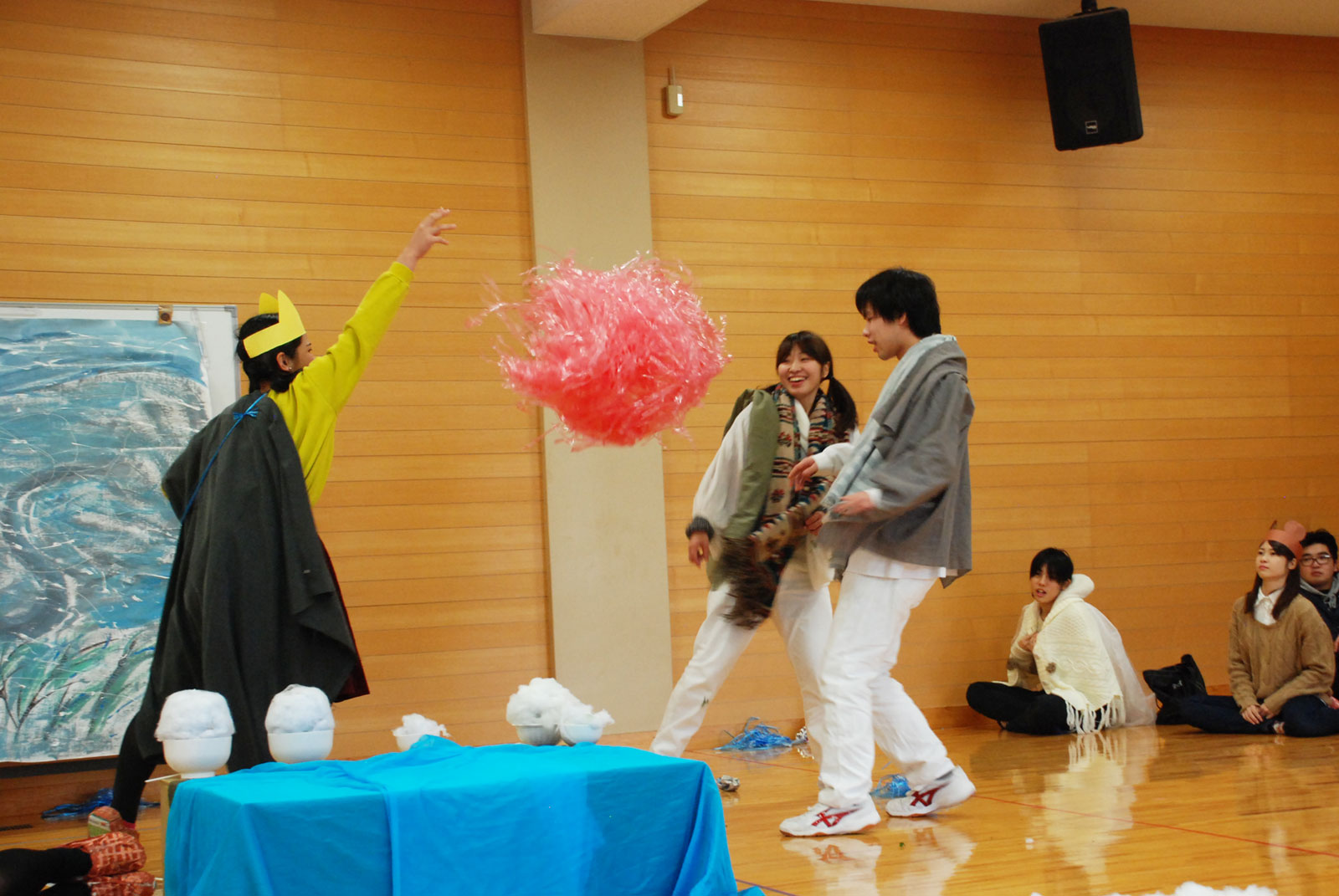 幼児教育科2回生が河南町の保育園・幼稚園での劇発表が明日に迫ってきました。昨日最終のリハーサルの発表をおこないました。まだまだ未完成ですが、最後まで頑張って完成度の高いものにしたいと張り切っています。不安もいっぱいですが、園児の反応も楽しみです。