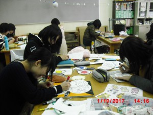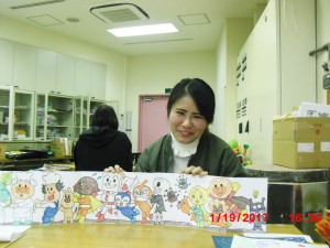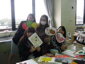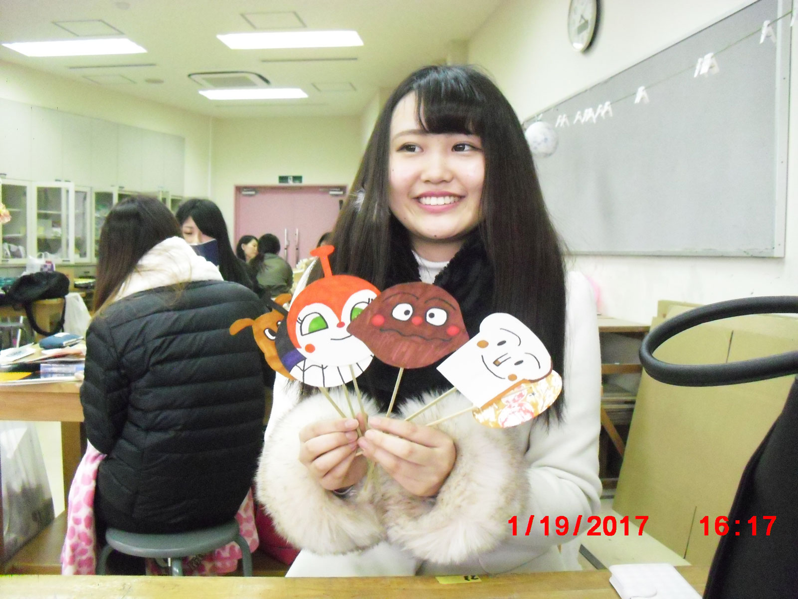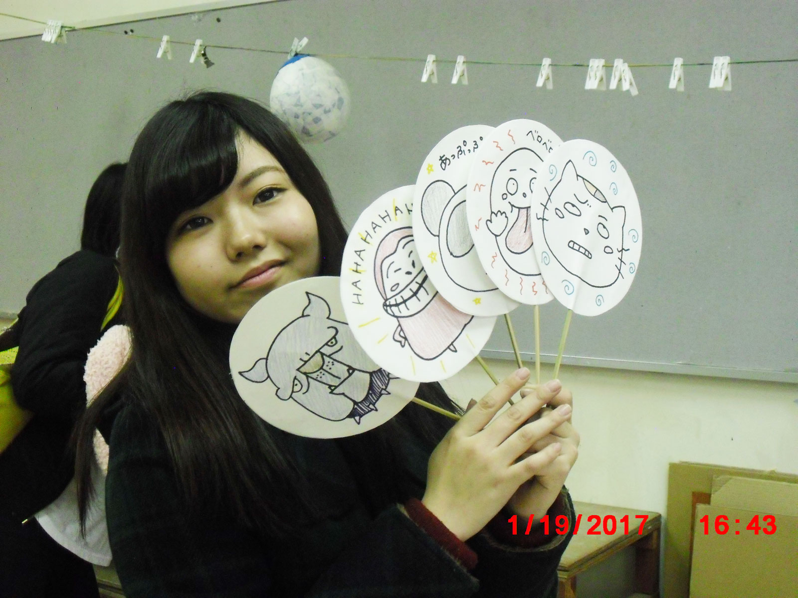 1月12日、1回生造形Ⅱの最後の授業「ペープサート作り」の様子です。