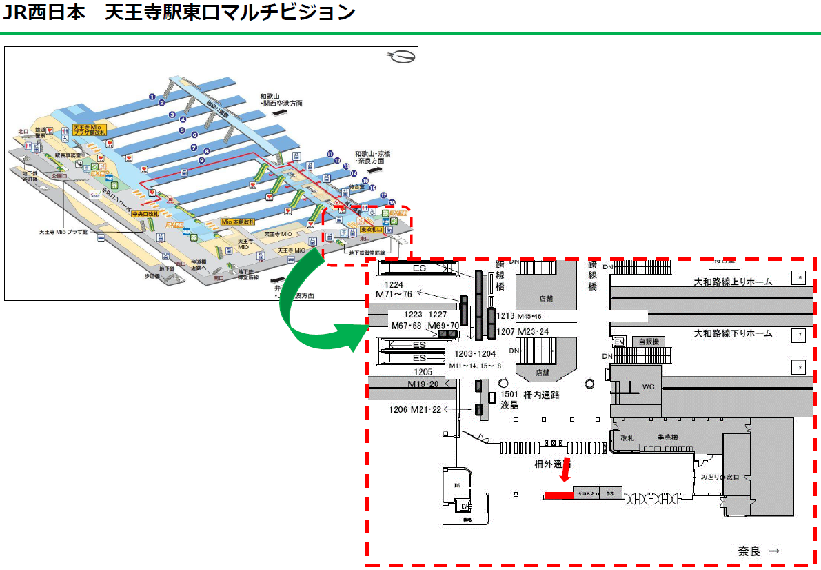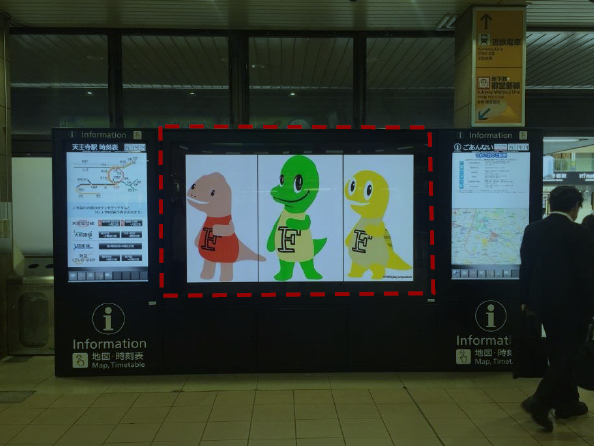 JR天王寺東口の電子掲示板にオープンキャンパス情報