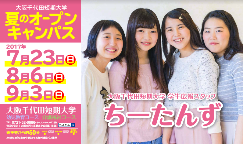 7月17日から1か月間、天王寺東口のデジタルサイネージに大阪千代田短期大学のオープンキャンパスのお知らせが掲示されます。4分間に1回の割合で15秒間の映像が流れます。お近くにお出かけの際には、ぜひご覧ください。