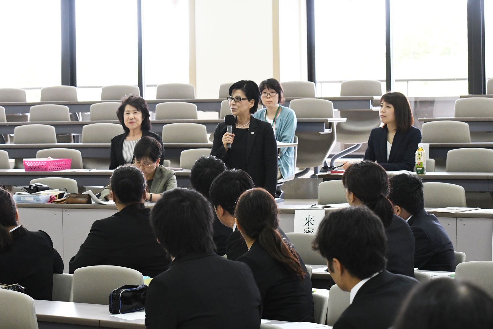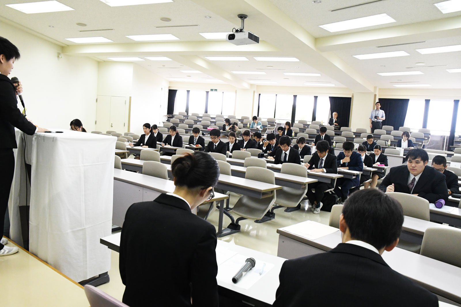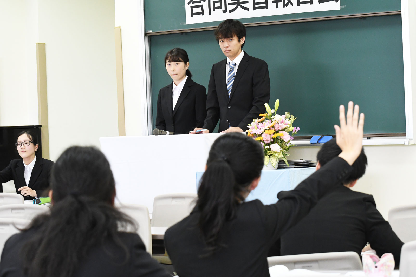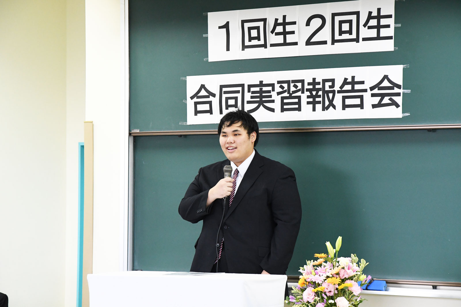 1回生は7日間の障がい者(児)福祉施設実習、2回生は24日間の介護老人福祉施設実習を終えての報告会です。多くの施設の方々が来賓としてお越しいただき、学生たちの報告を聞いていただきました。