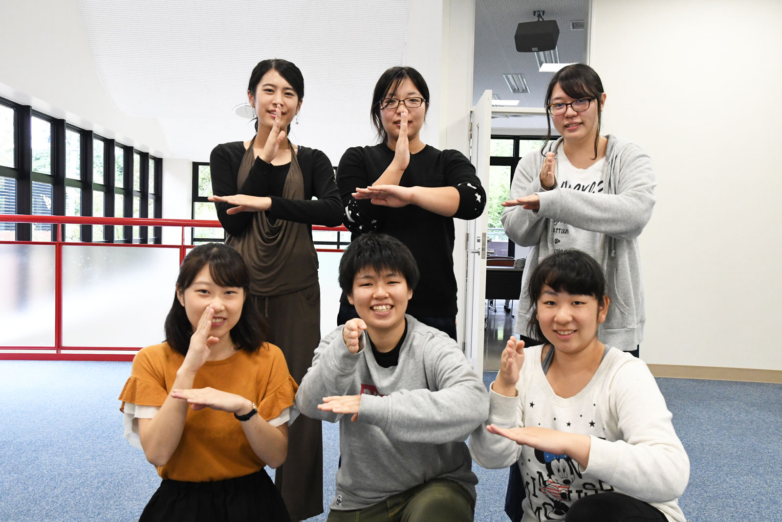 介護福祉コース2回生有志6名、K-Sing Aqua Timezの「虹」、ケツメイシ「友よ」のメドレーを手話を取り入れたダンスを踊ります。ただいま空き時間を使って猛特訓中。当日の出来をお楽しみにしておいてください。