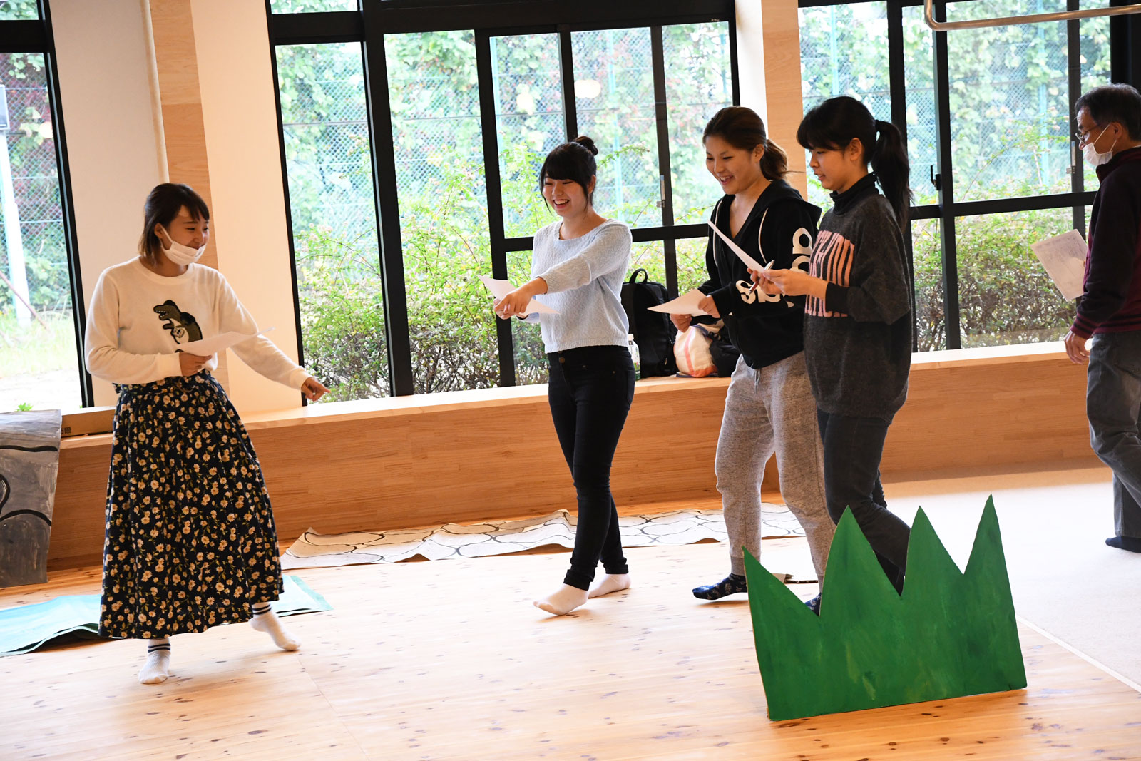 幼児教育コース2回生は、シベリアの昔話を題材にした「まほうのたいこ」という絵本をもとに劇をつくっています。12月には河南町の保育園や幼稚園、附属ちよだ幼稚園で公演します。大道具はほぼ出来上がり、いよいよ立ち稽古が始まっています。まだまだ完成には程遠いけれど、急ピッチで練習していきますのでご期待ください。
