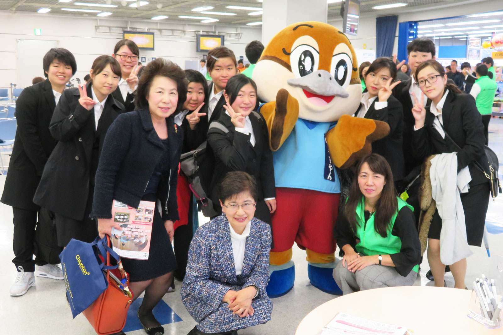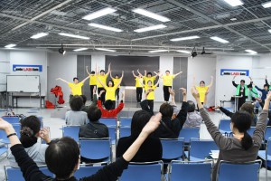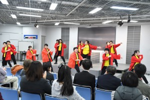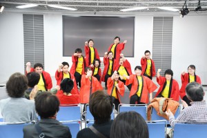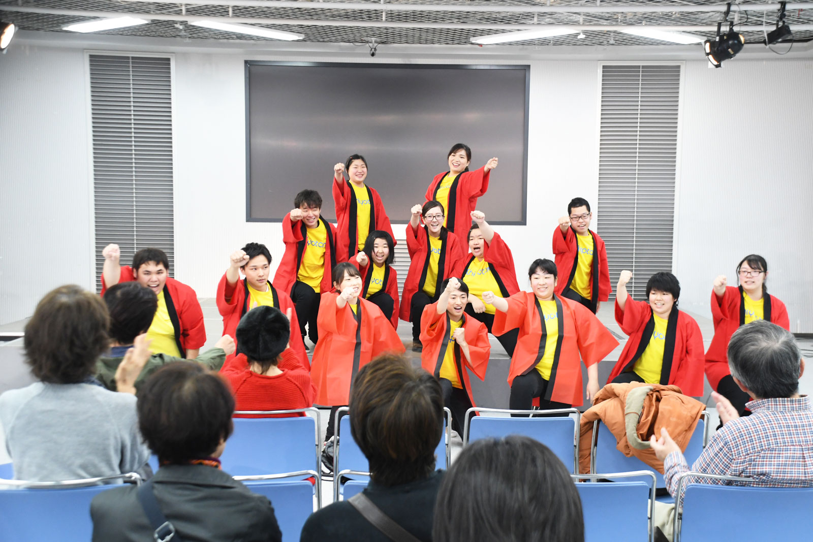 11月18日、なんばヤマダ電機4Fイベントスペースで介護福祉士の取組みを多くの方々に理解していただくため「介護きらきらフェスタ2017」が行われました。本学、介護福祉コースの1・2回生の有志14名は「ソーラン」「ヤングマン」の2曲の踊りを披露しました。会場の皆様も巻き込んで大いに盛り上がりました。