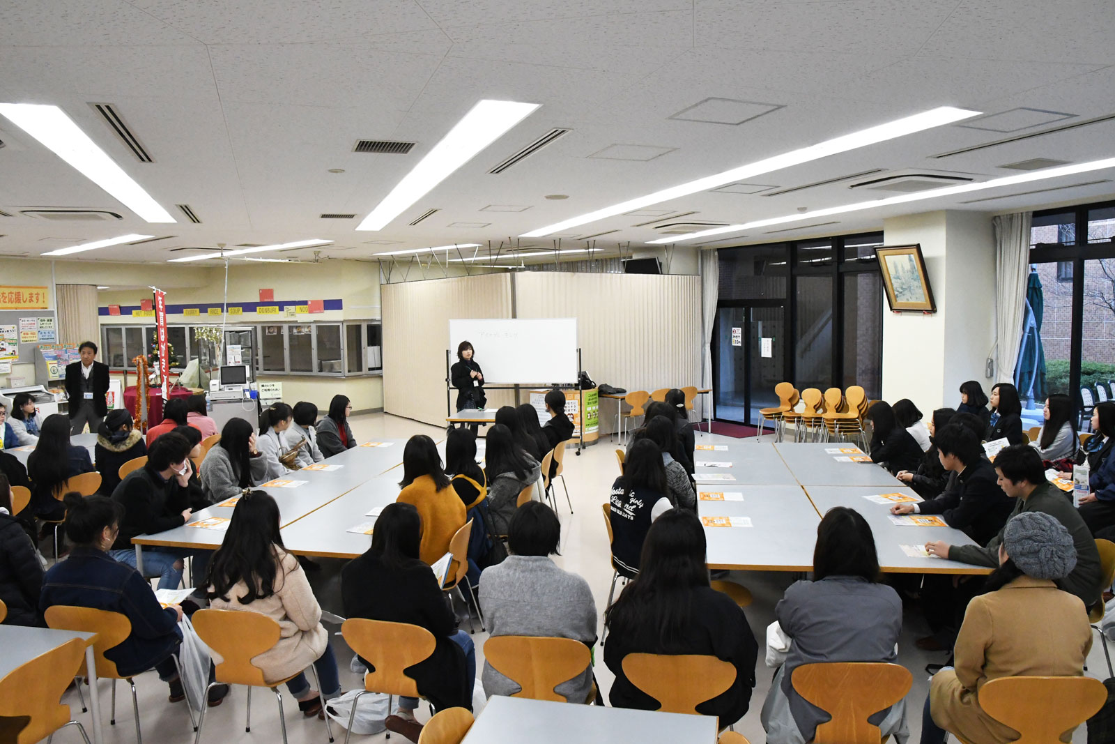 12月9日、来年度千代田短大入学予定者に短大の授業を知ってもらうためのプレカレッジを行いました。幼児教育コースは緊張感をほぐすためのゲームやコミュニケーションを促進するゲームを行いました。介護福祉コースはVTRをみて介護福祉士の仕事について意見交換を行いました。短大での授業のイメージを少し持てたかなと思います。