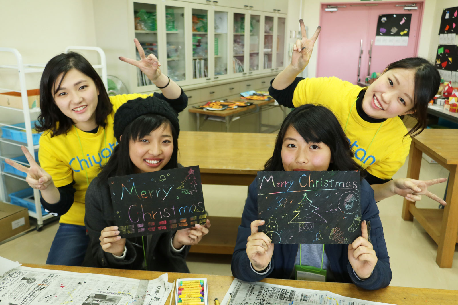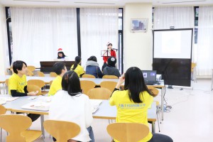 12月17日、オープンキャンパスを行いました。寒い中で参加していただいた皆様、ありがとうございました。クリスマスも近いので、会場の飾りつけも工夫しました。幼児教育コースでは造形の体験授業「スクラッチでクリスマスを表現しよう」を行いました。介護福祉コースは、「ちよたん生がつくる介護施設でのクリスマス」ということで施設での行事を想定して取り組みました。食事の後、本校教員がピアノの演奏をバックに絵本の読み聞かせを行いました。最後にサンタさんが登場し、参加者にお菓子のプレゼントを行いました。