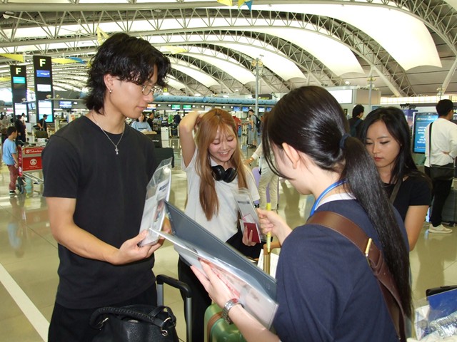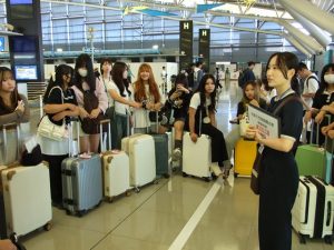 関西国際空港11:00発ジンエアー242便で、今年の韓国研修旅行参加者15名と教員2名 が出発しました。明日は、梨花女子大学福祉保育園で研修と交流を予定しています。楽しく、充 実した旅行にしてほしいと思います。