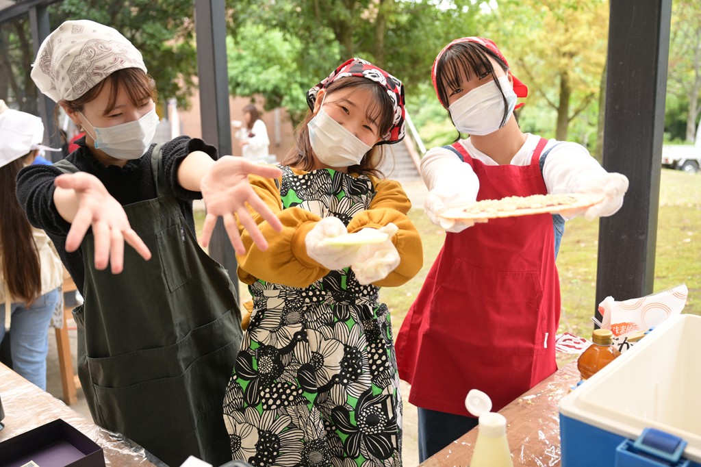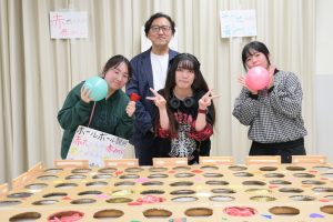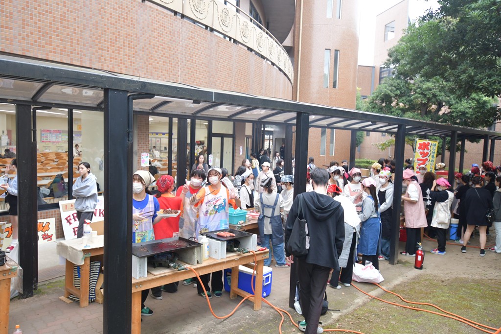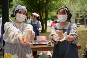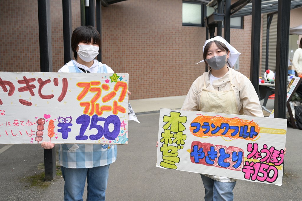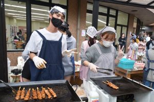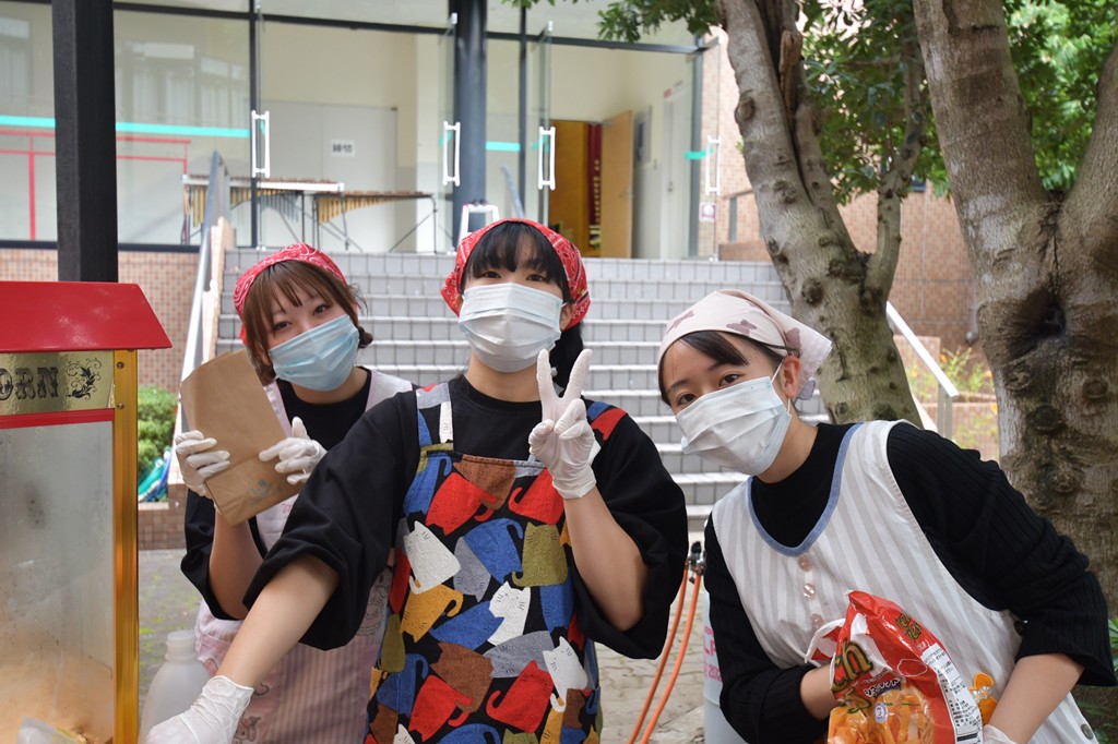 小山田祭の午後からは、各ゼミが模擬店と縁日(あそびコーナー)を行いました。焼き鳥・フランクフルトやポップコーン、綿あめなどそれぞれのゼミが協力して販売しました。縁日では、お化け屋敷や、ゲームやおみくじを行いました。多くの子どもたちが遊んで行ってくれました。