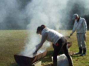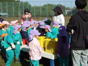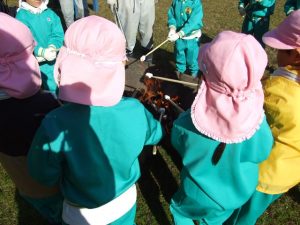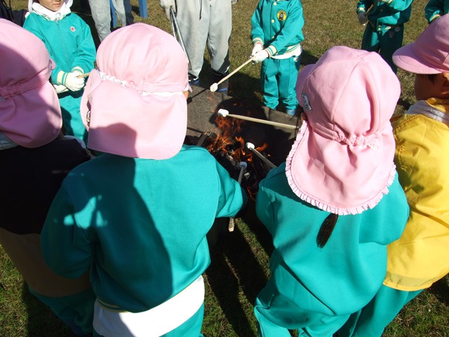 附属幼稚園の年長・年中組が焼き芋と焼きマシュマロに挑戦しました。年長組は、新聞紙 に火をつけ、薪を入れました。芋が焼けるまでの間、紅葉真っただ中の「ちよたんの森」 には子どもたちの歓声が響き渡りました。