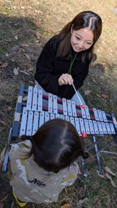 今月は大浦ゼミ有志の卒業生や在校生も集まり、子どもたちと一緒に森の資源で楽器を創り、短大の森の開放日に参加し森の音楽会を行いました。