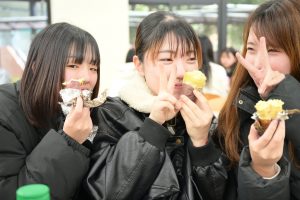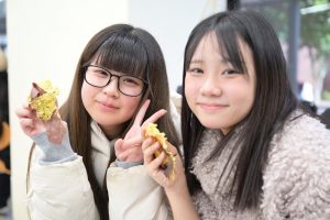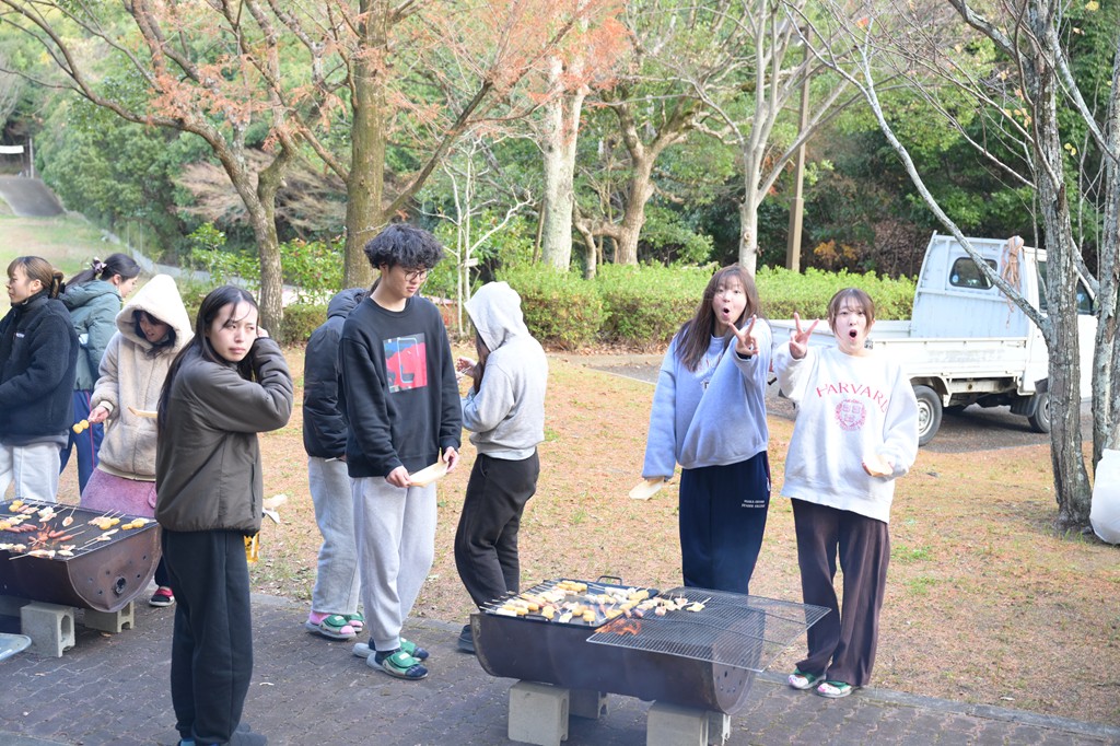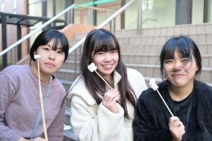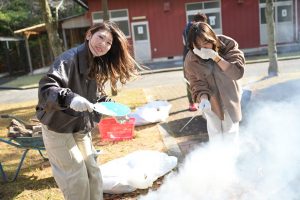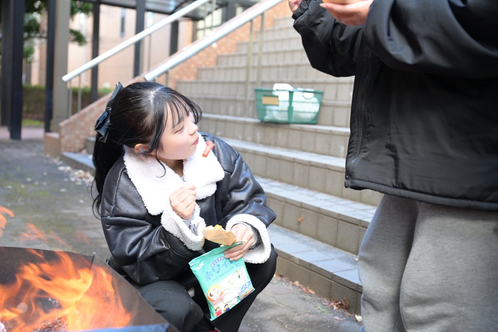 ちよ短冬の恒例行事、焼き芋大会。校内の落ち葉を集め焼き芋をしました。焼き芋以外にもマシュマロやウィンナー、チキンナゲットなども焼きました。木枯らしの吹く中でしたが、おなかと心が温かくなりました。