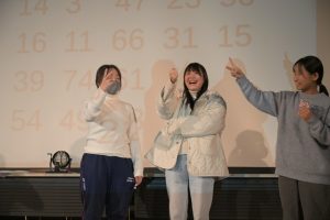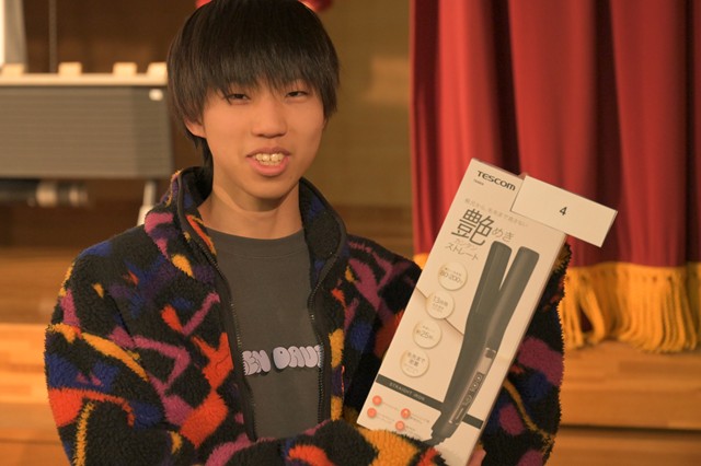 12月19日放課後、自治会主催のクリスマスビンゴ大会が行われました。豪華景品をめぐっての白熱したビンゴ大会。ビンゴになった人からくじを引いて景品が当たるルールで、なんと1等賞のディズニーランドペアチケットは、最後まで残りました。最終便後の3人がじゃんけんで当選を決めるという状況に大いに盛り上がりました。