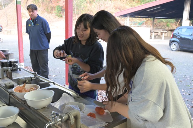 12月20・21日、アウトドアサークルは、紀北青少年の家で合宿を行いました。初日は晴天の下、テニスを行い夕食にはカレーをつくりました。食後に体育館でバレーボールをしました。二日目は、朝から雨でしたが、昼にピザをつくって食べました。充実した二日間を過ごしました。