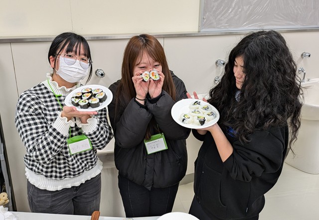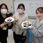 今月のこども交流会は巻き寿司を作りました。学生はこどもたちに笑顔で声をかけて一緒に活動していたり、こどもたちががんばったところを言語化して皆に紹介したり、こどもたちの嬉しそうな笑顔が輝いていました。そして、学生とこどもたちが協働する場が学内にあるところがちよたんの素敵なところです♪