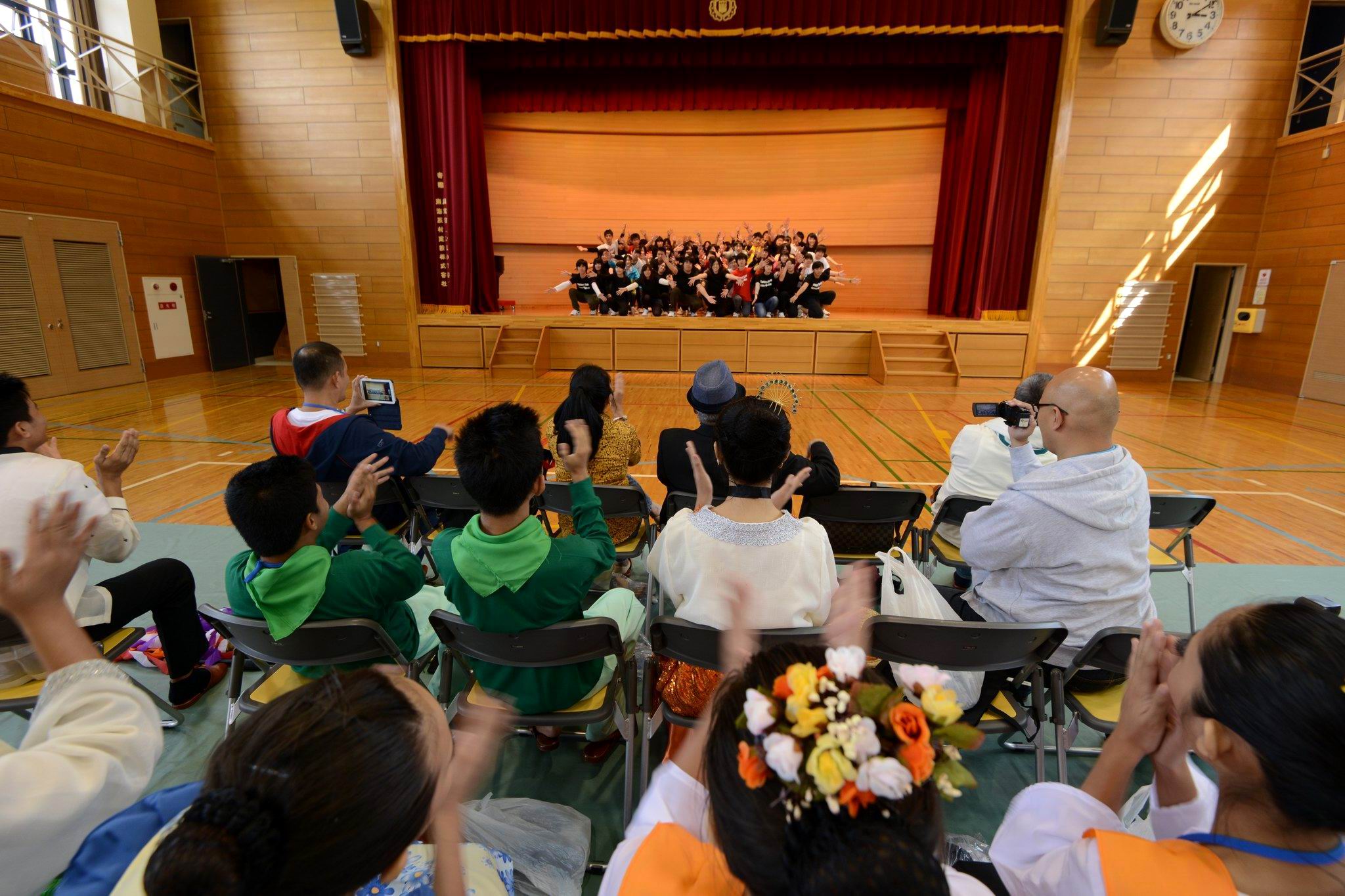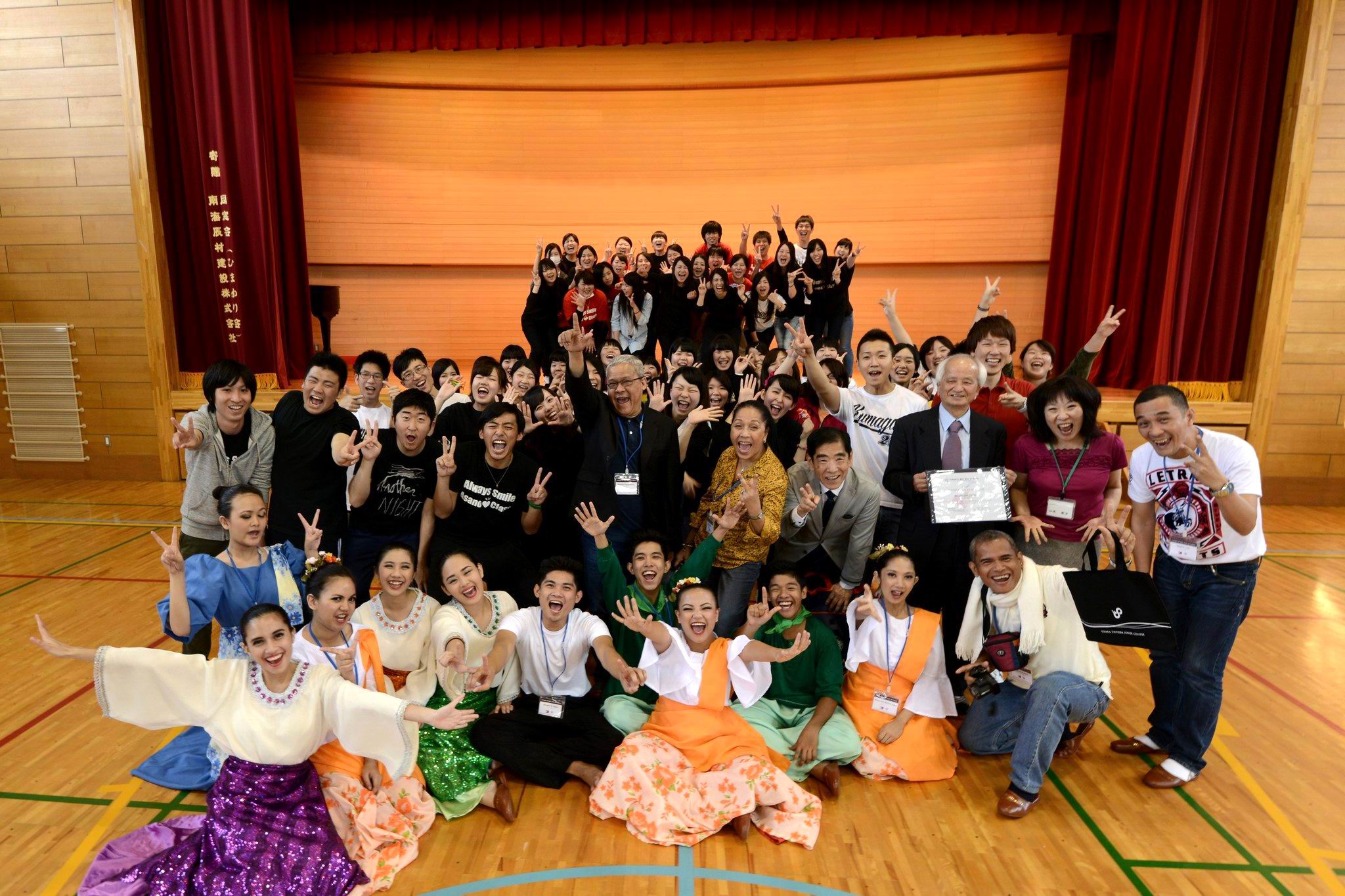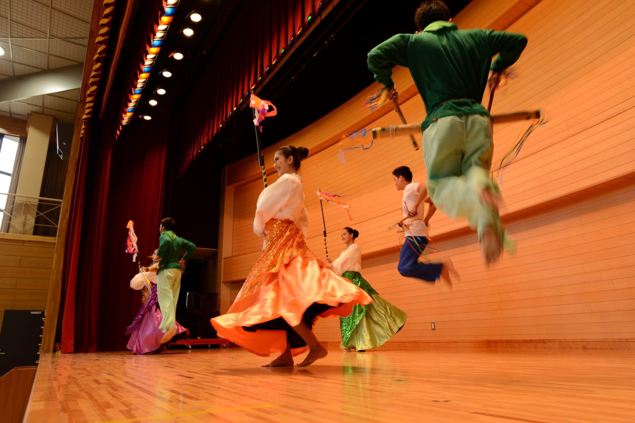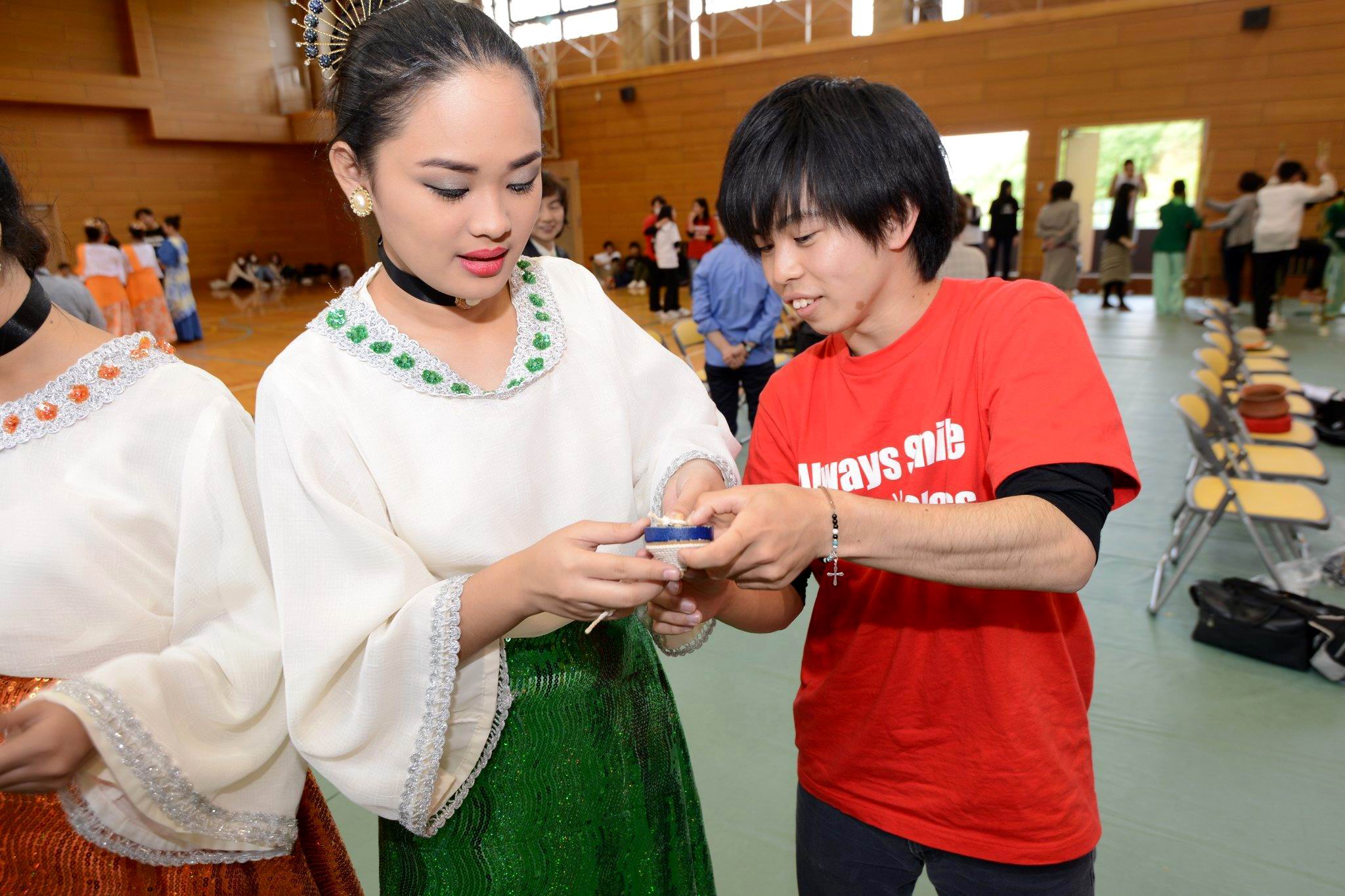 日本の文化の紹介として、こま回しや竹馬、鳴子踊りで交流。また本学のボディーパーカッションとレトラン学院の学生さんたちのフィリピンの民族舞踊をお互いに披露。交流の最後には、両校の学生全員で民族舞踊を踊り、大変な盛り上がりとなりました。