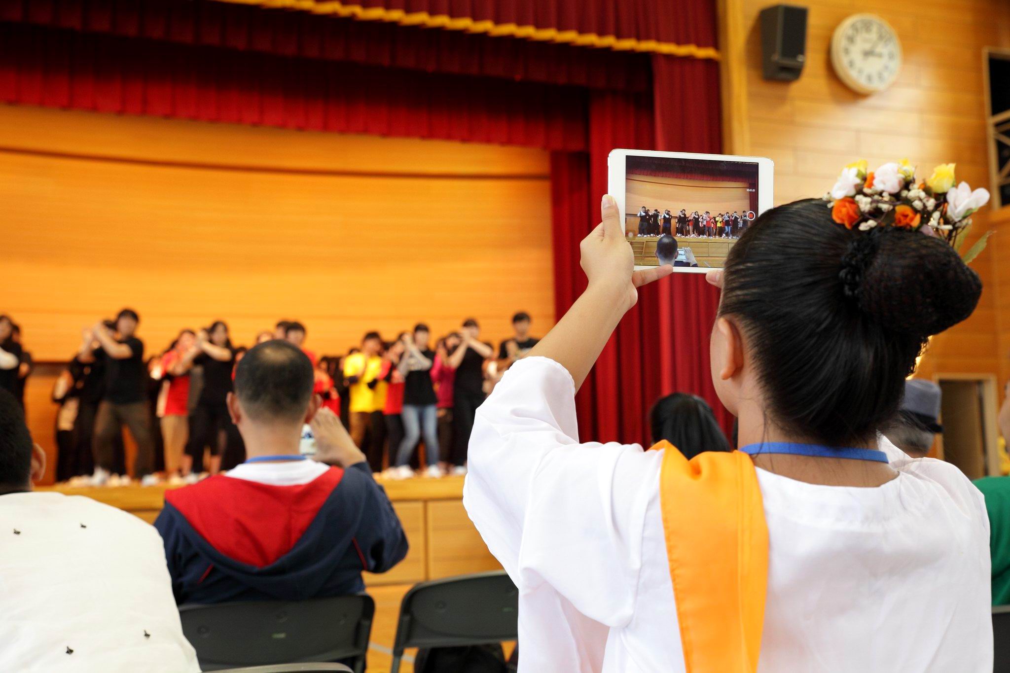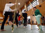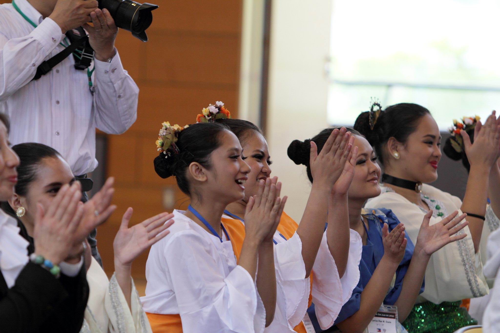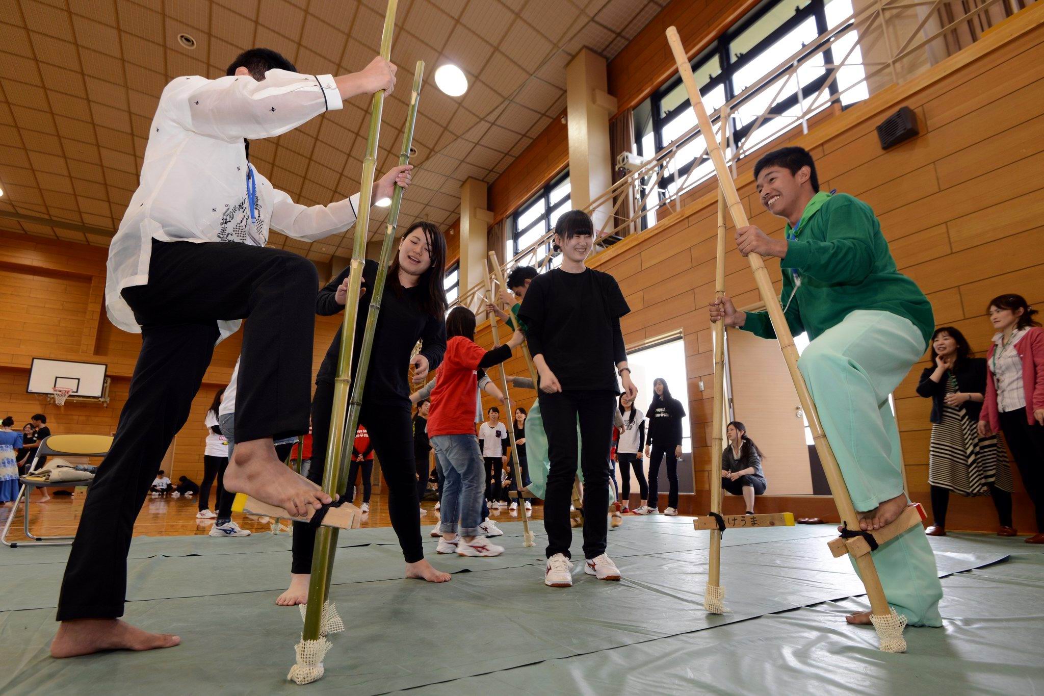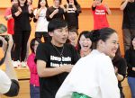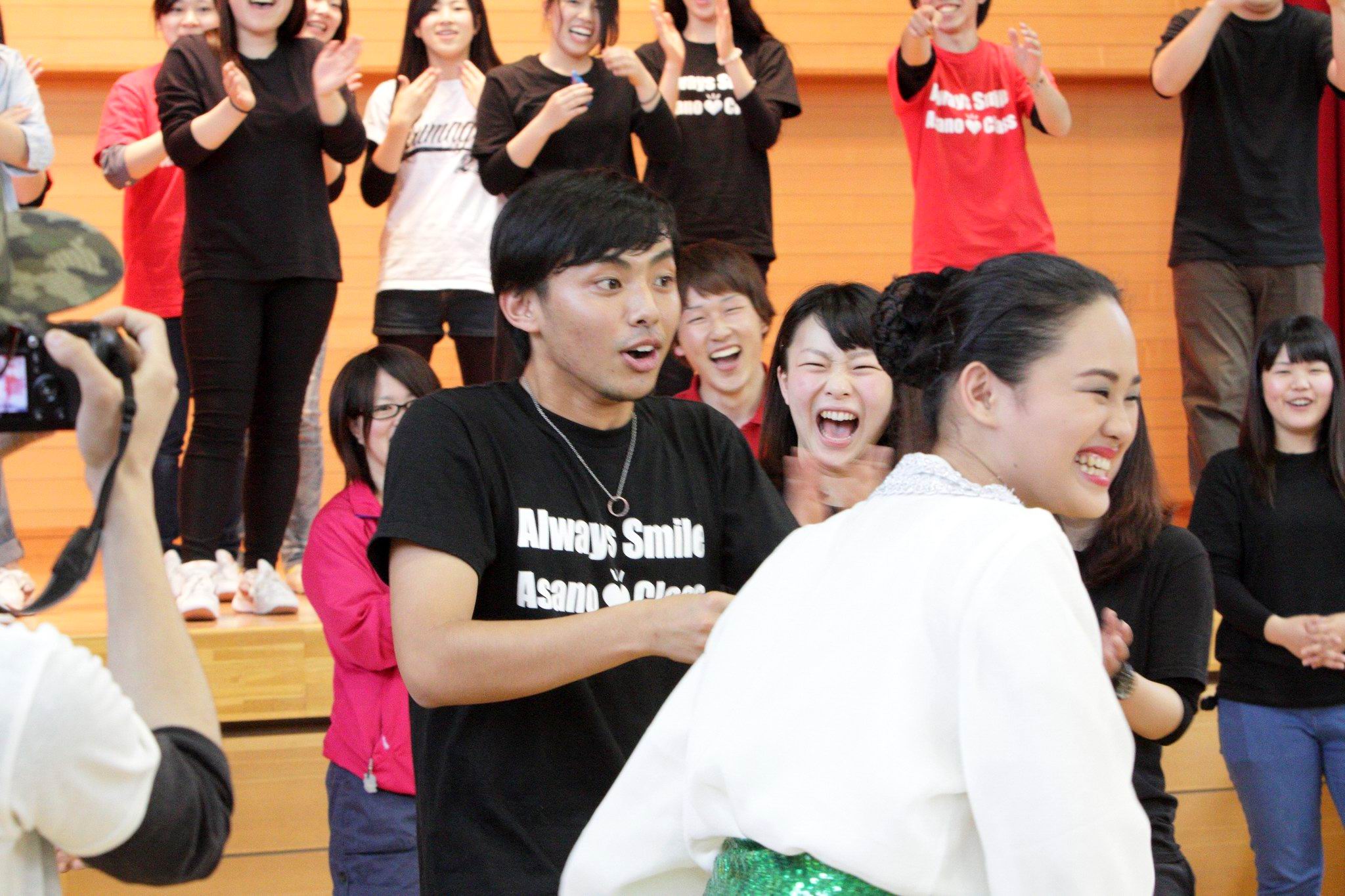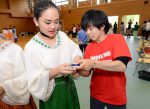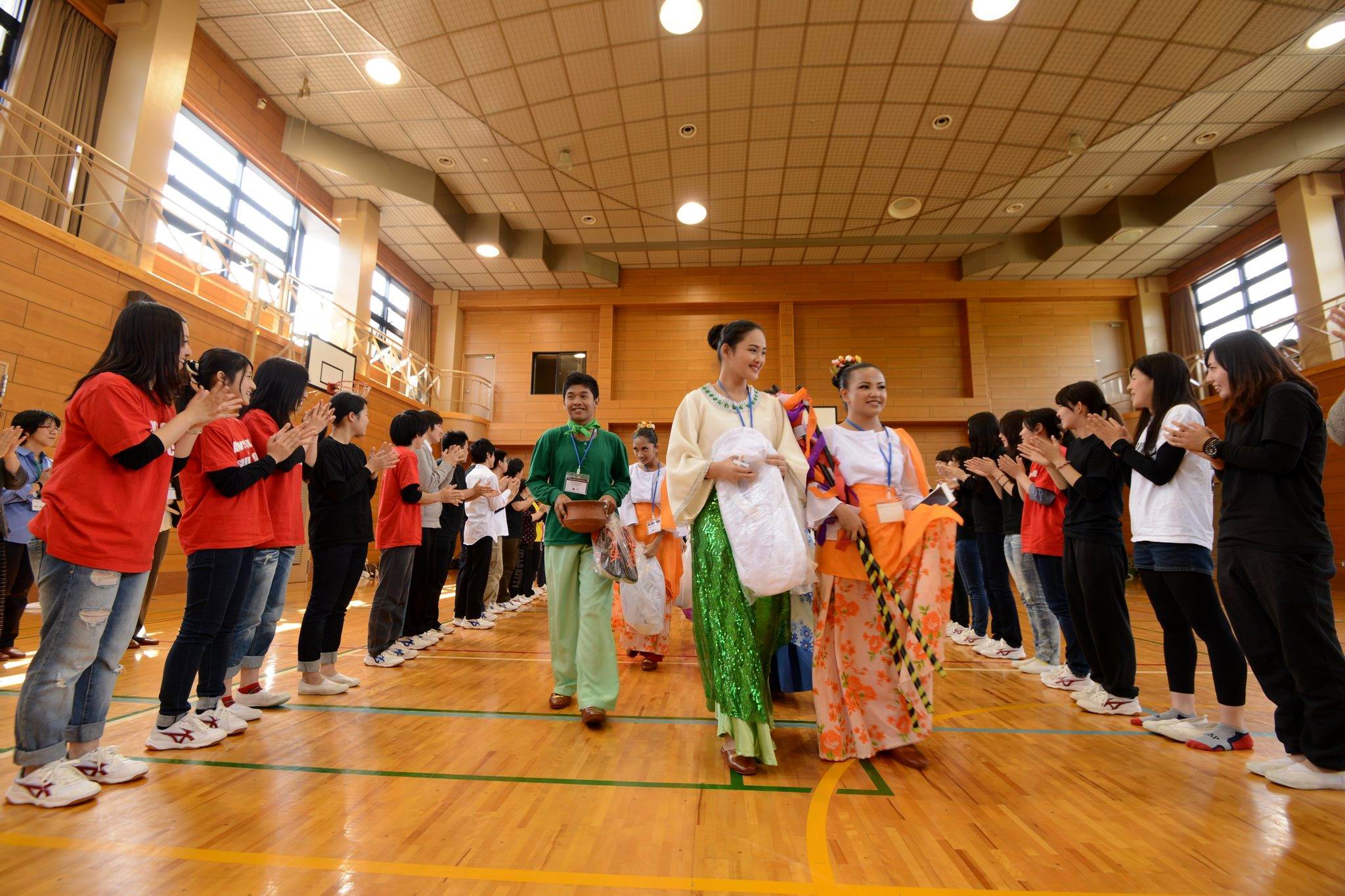 日本の文化の紹介として、こま回しや竹馬、鳴子踊りで交流。また本学のボディーパーカッションとレトラン学院の学生さんたちのフィリピンの民族舞踊をお互いに披露。交流の最後には、両校の学生全員で民族舞踊を踊り、大変な盛り上がりとなりました。