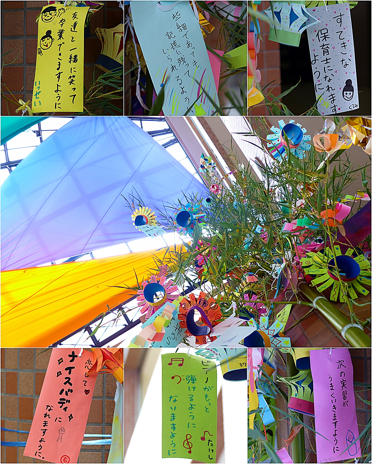 幼児教育科の学生たちが作った七夕かざりでロビーが華やかになりました♪
