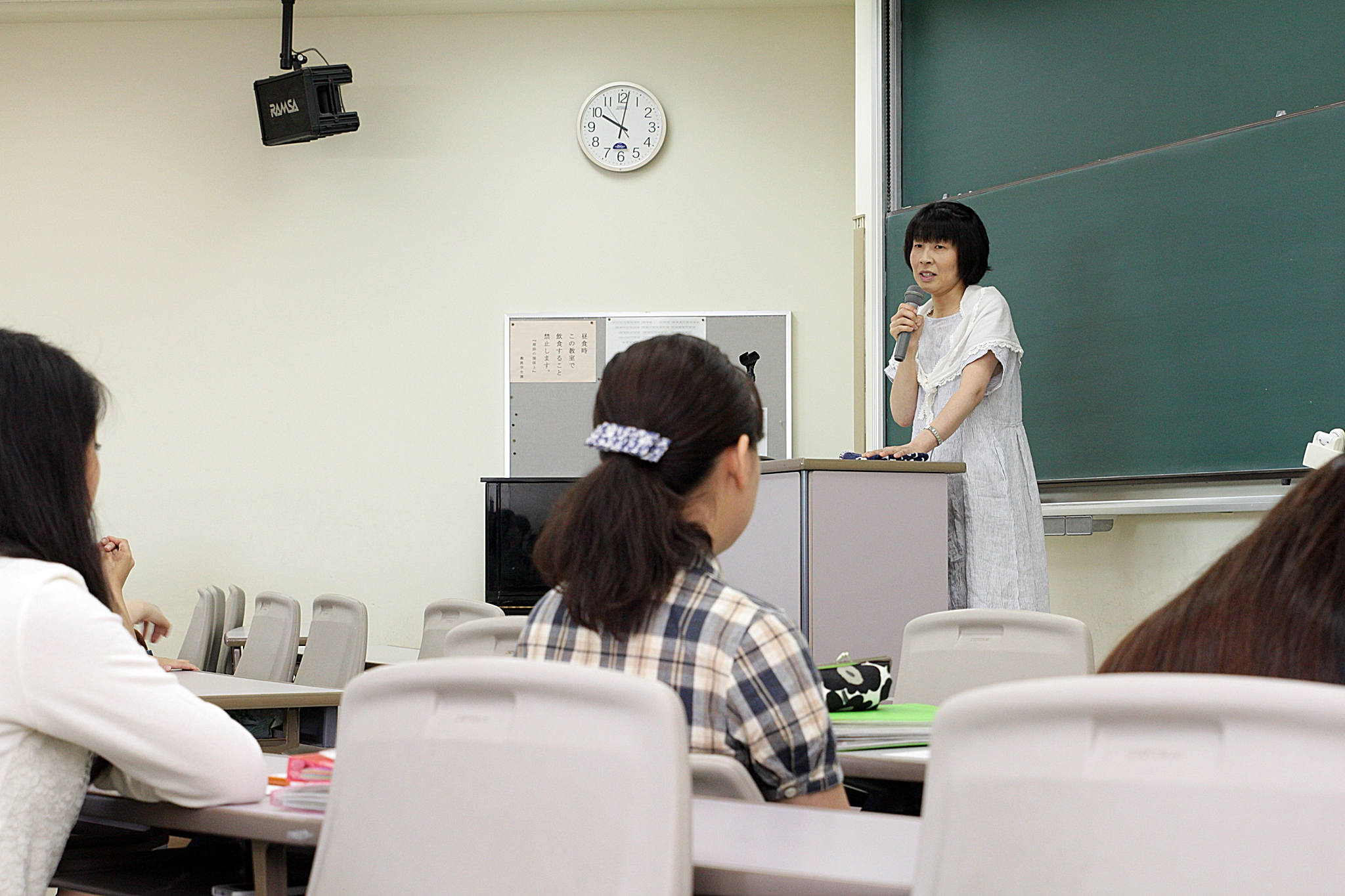 先日、おおさかちよだ保育園の八田副園長先生にご来学いただき、「職業人~先輩から学ぶ~」というテーマで保育園の仕事や子どもとのかかわりの中で感じる喜びについて特別授業をしていただきました。