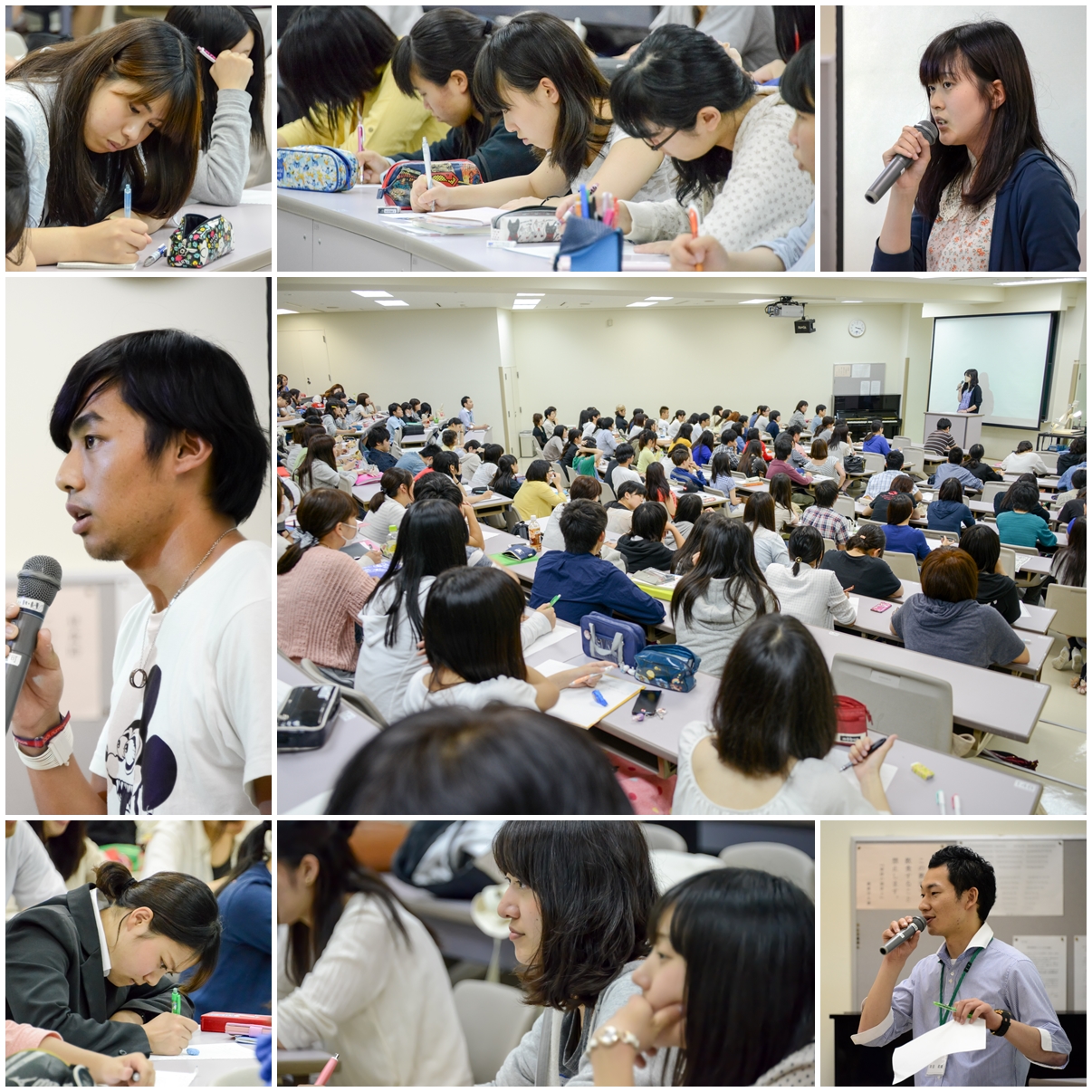 実習から帰ってきた学生たちは、それぞれ実習園で体験したことを報告しあい、自分とは違う経験をしてきた仲間の報告を真剣なまなざしで聞き入っていました。