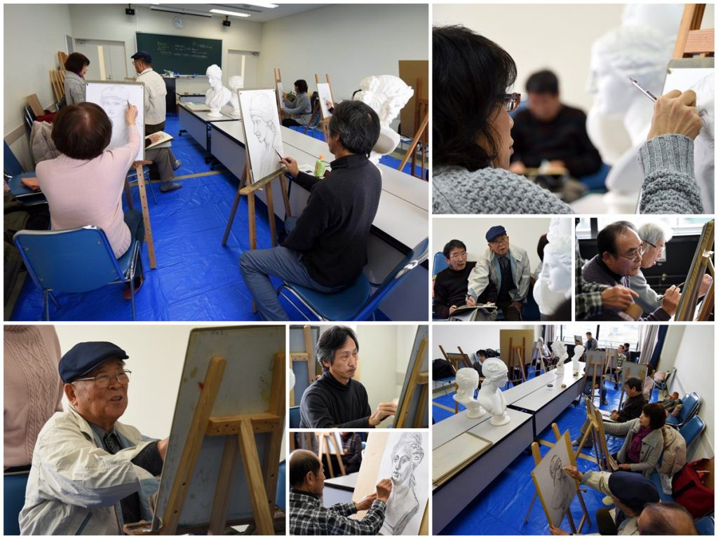 この日は石膏モデルを使った肖像画デッサンの授業で、思い込みや先入観による線のズレやゆがみをいかにして修正するかなど丁寧に個人指導を行いました。