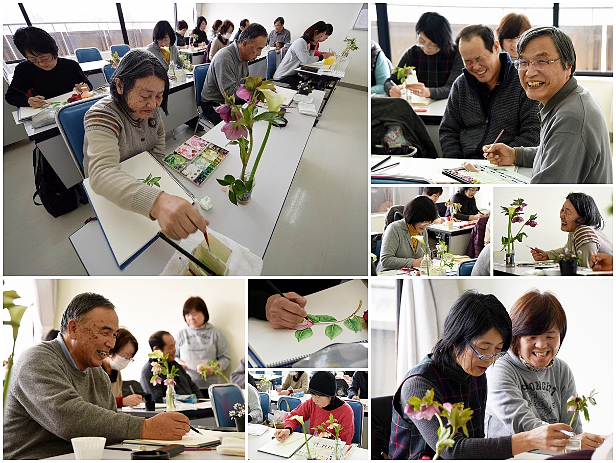 草花の美しさ、繊細さ、構造を写実的に表現する技法を基礎から指導しています。 時間をかけて丁寧に描いていくので、 完成した時の喜びはひとしおです。
