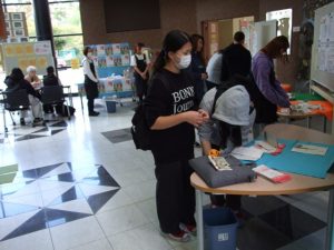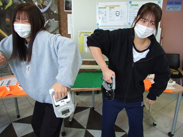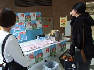 食堂を運営している生活協同組合が、学生の食生活相談会を実施しました。個別相談をはじめ、 ベジタブルチェック・アルコールパッチ・握力測定など多彩な内容です。白バラ牛乳の試飲もあ りました。