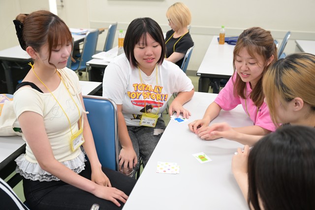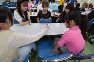 言葉が苦手な子でも楽しく取り組めるゲームを通じ言葉の理解・表現を伸ばす有効な手立てを体験してもらいました。とても面白いゲームで、ちーたんずの学生や初対面の参加者とも仲良くなりました。