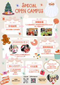 さて12/13(土)はクリスマスオープンキャンパスです🎄🌟